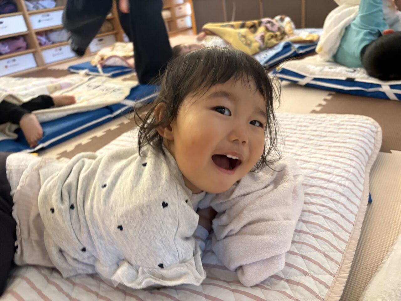 今回はなかなかお見せする機会が少ない「午睡」お昼寝の様子を少しだけお伝えできればと思います